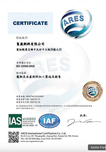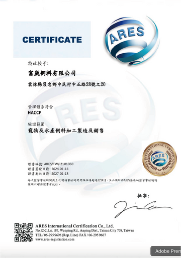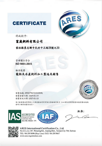 富威飼料有限公司已通過ISO22000、HACCP和ISO9001國際品質認證。